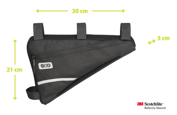 One Frame L je velmi kvalitní brašna do rámu, která je vyrobená z vodoodpudivého materiálu. Objem brašny je 2,5 l a na obvodu je pro větší odolnost použit neopren. Na boku oceníte praktickou kapsu na suchý zip. Samozřejmostí jsou reflexní bezpečnostní prvky.