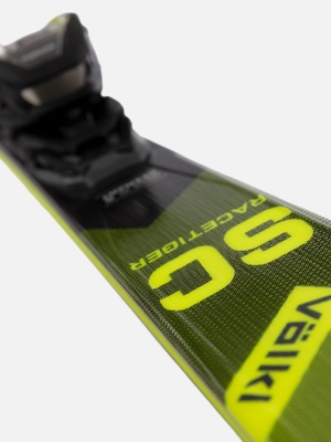 Odladěné slalomky Völkl Racetiger SC mají dřevěné jádro vyztužené titanalem a skelným vláknem ve 3D struktuře, disponují výztuhou špiček z karbonových vláken pro eliminaci nežádoucích vibrací a prohnutím tip rocker na špičce pro snazší zahájení oblouku.