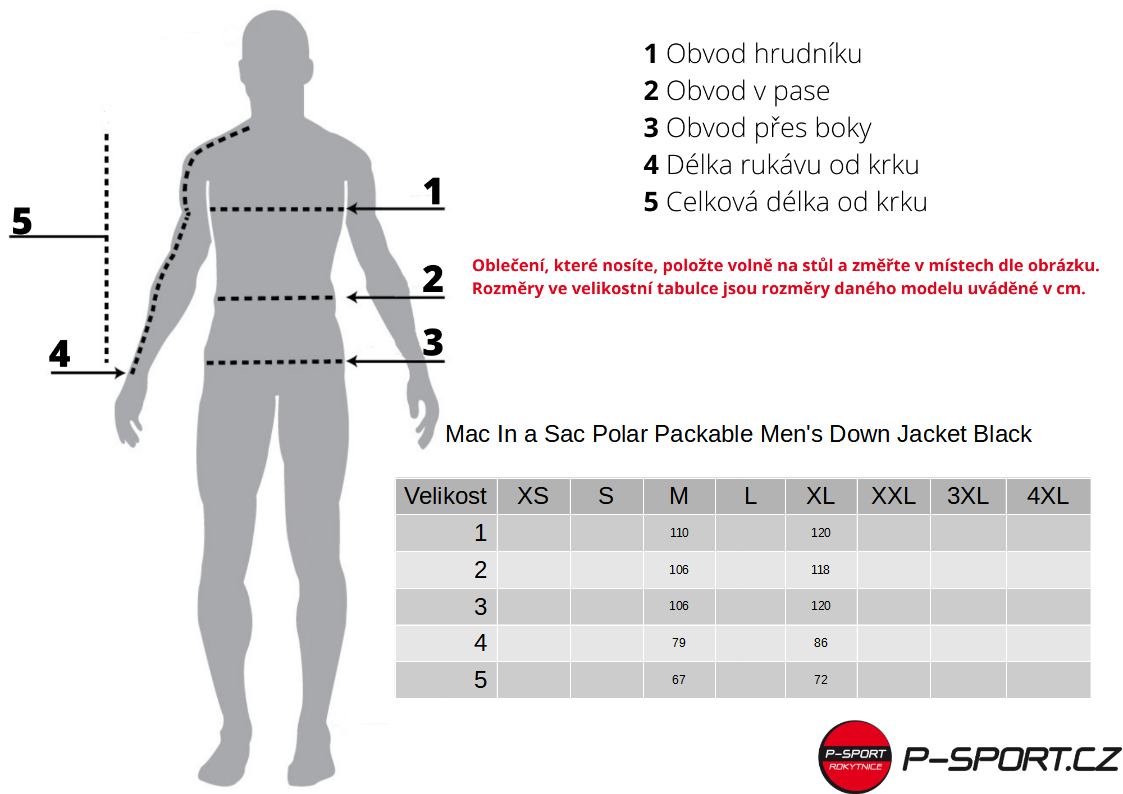 Pro výběr správné velikosti využijte přiloženou velikostní tabulku.